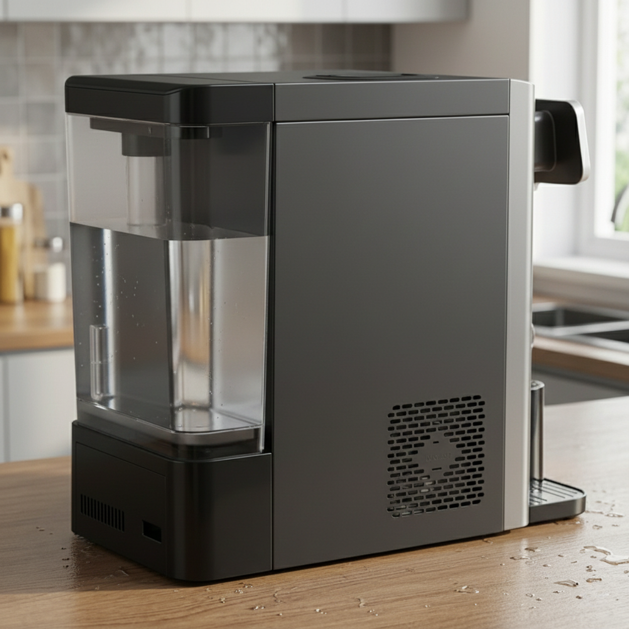 Osmoseur inversé de comptoir de gamme avancée, conçu pour des usages domestiques intensifs et des environnements tertiaires légers. Système multi-modes intégrant plusieurs températures de distribution et une alimentation flexible.